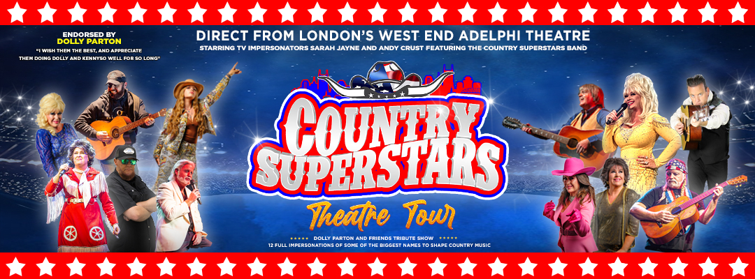 TV and West End Dolly star Sarah Jayne has been performing as Dolly Parton for Now 30 years and is Europe’s leading tribute to the Queen of Country having worked Dolly Parton’s Last two World tours entertaining her V.I.P’s at London’s O2 Arena. Joined by award-winning TV Vocal impersonator Andy Crust, prepare to be taken on a journey back through time to meet the most influential icons to have shaped country music history,